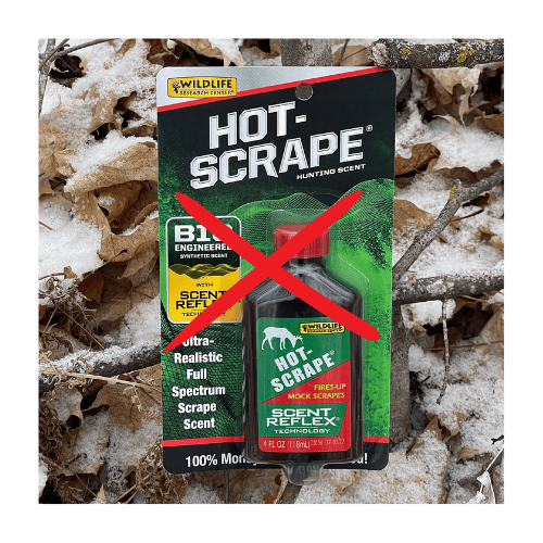 While on the topic of artificial additives, it is crucial to note that the best scent to add to a mock scrape is NO scent. Allow the deer to add their own natural scent. Artificial, lab grown fairy dust scents are a waste of your hard earned dollar and provide little to negative results.