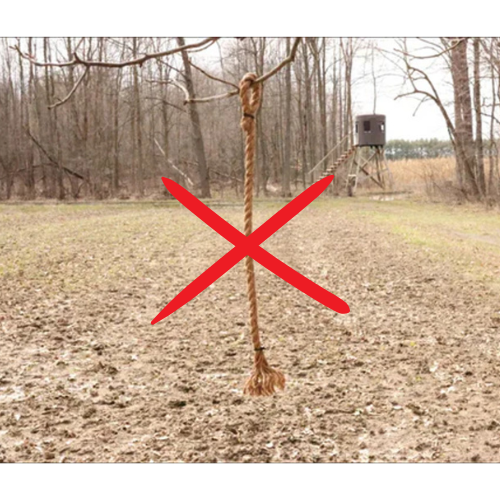 IMPORTANT:. Never use rope or ribbon for your mock scrape lick stick. They are extremely unnatural, deter mature bucks, and are simply gimmicks sold by hunting companies.