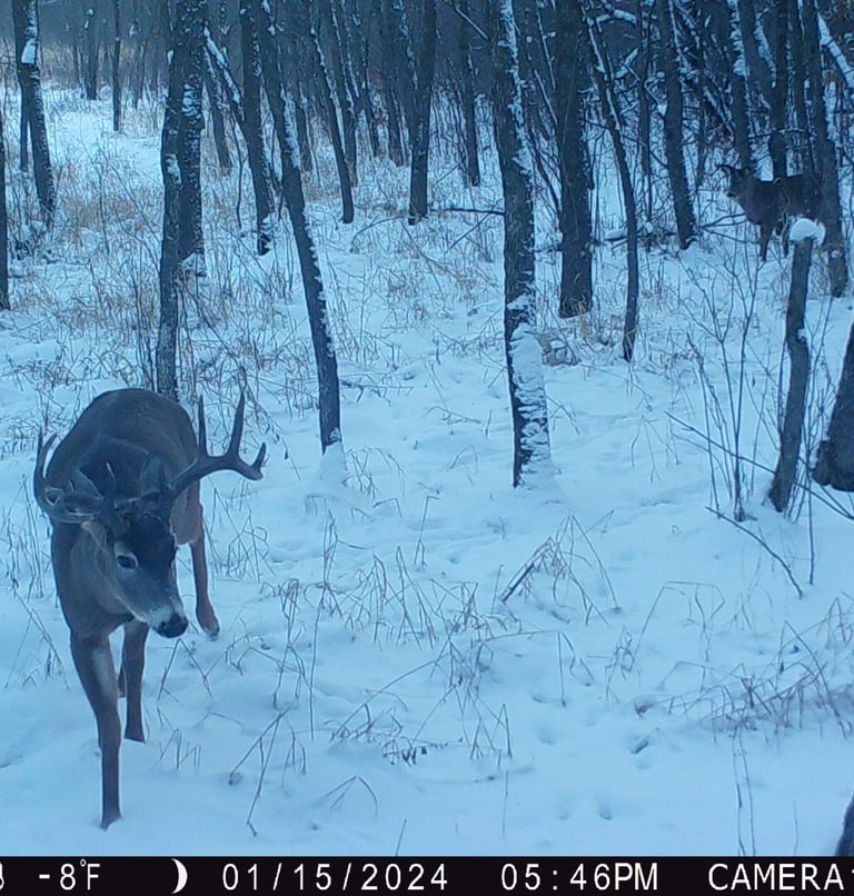 Evening hunts tend to be the most productive. Movement toward unpressured, high-quality late-season food sources is stronger than it is during the primary rut. Any safe, quiet food source becomes a magnet, drawing large numbers of does and fawns. Where the does gather this time of year, the mature bucks follow, often with renewed rut intensity. Continue to hunt like a predator: use clean access routes and hunt safely from a distance.