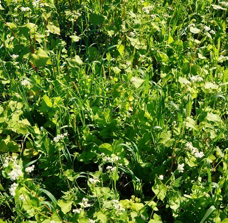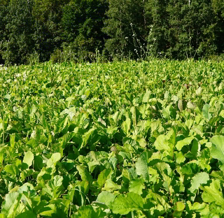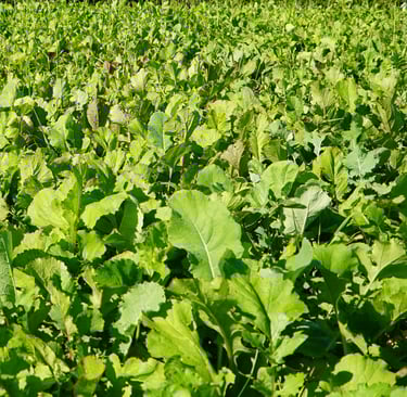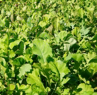 An effective annual green base may include: peas, brassica, rye, wheat, oats, and late-planted beans. THIS article breaks down exactly what to plant in your green blend for optimal results!